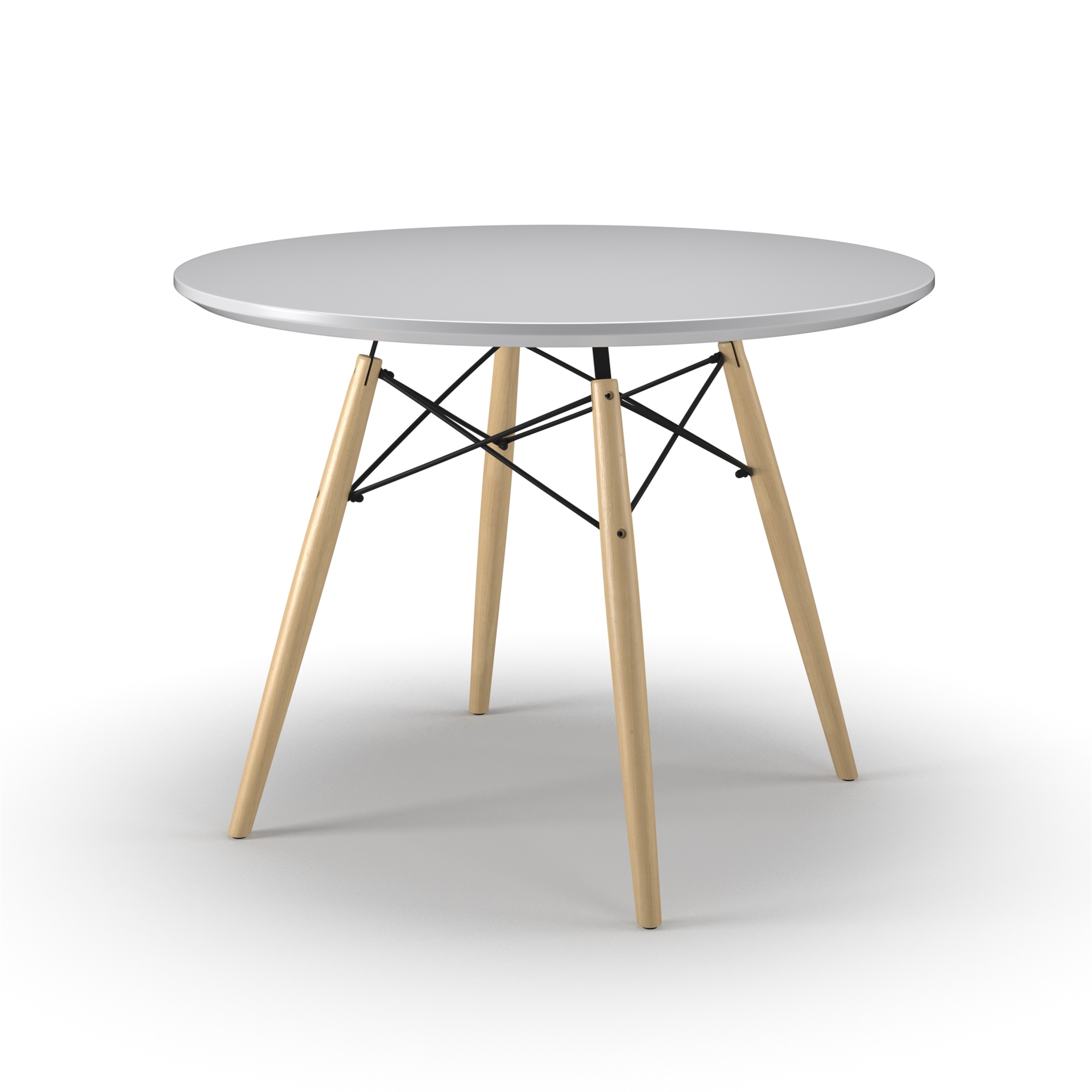 Round white/heather gray solid wood dining table.